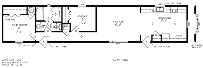 ROYAL CANADIAN MODEL C502 - 2 Bed 1 bath - 894 Sq. Ft.